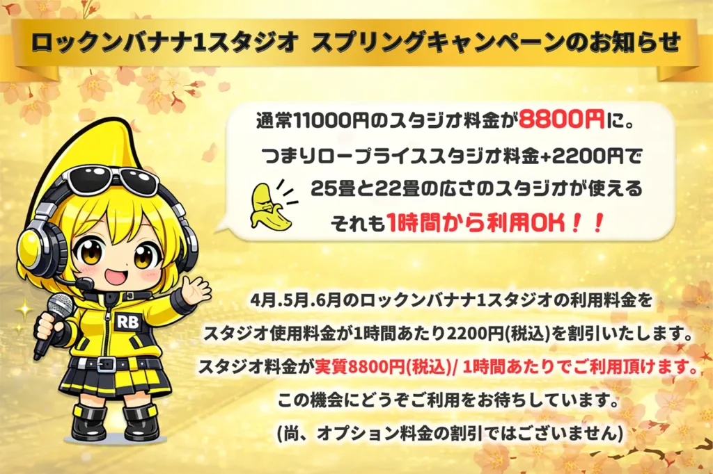 ロックンバナナ1スタジオのスプリングキャンペーンのお知らせ